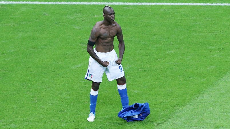 C’est la 36e minute de jeu dans la demi-finale de l’Euro 2012 entre l’Allemagne et l’Italie. Parfaitement servi dans la profondeur par Riccardo Montolivo, Balotelli fusille Manuel Neuer d’un missile dans la lucarne. Pour célébrer son doublé dans ce match, Super Mario retire son maillot et gonfle ses muscles.